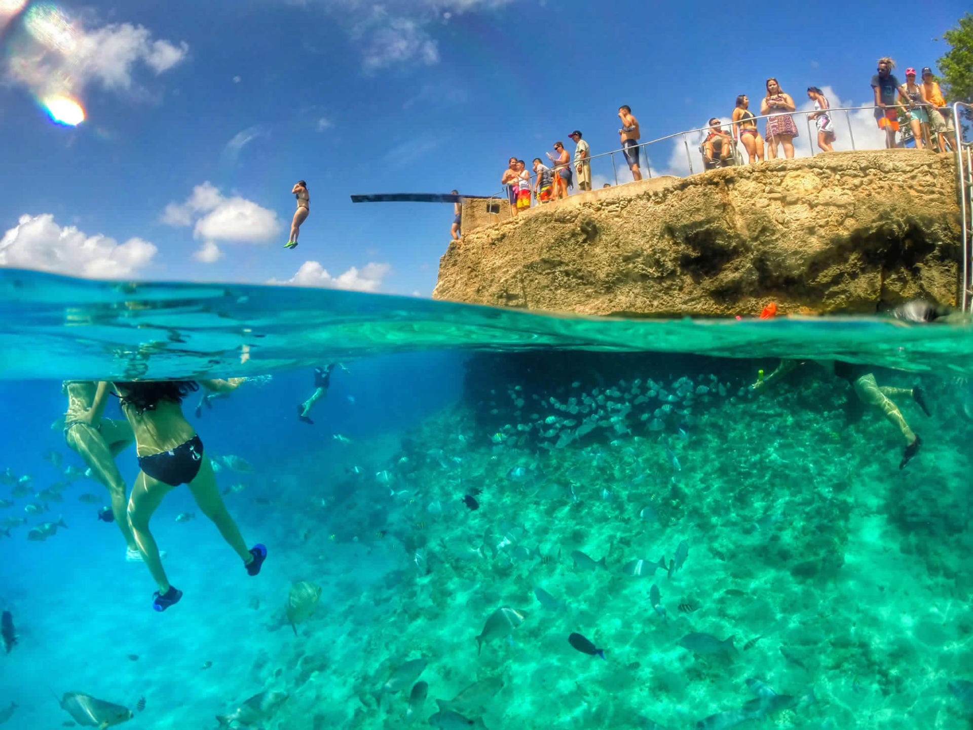 el parque es un lugar ideal para clavados,zona de toboganes ,practicar esnórquel y alimentar peces.
